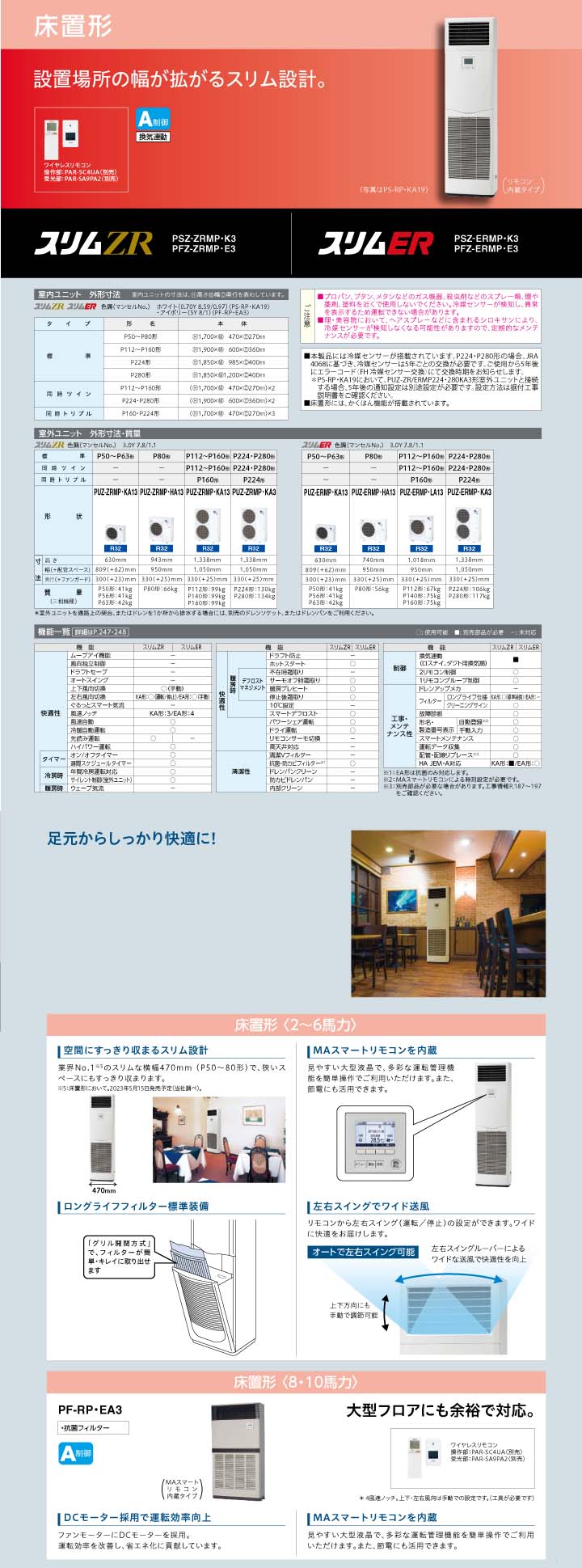 PSZ-ZRMP112K3 <在庫限り>三菱電機 スリムZRシリーズ 床置形 4馬力 シングル 超省エネ 三相200V ワイヤード 冷媒R32 業務用エアコン